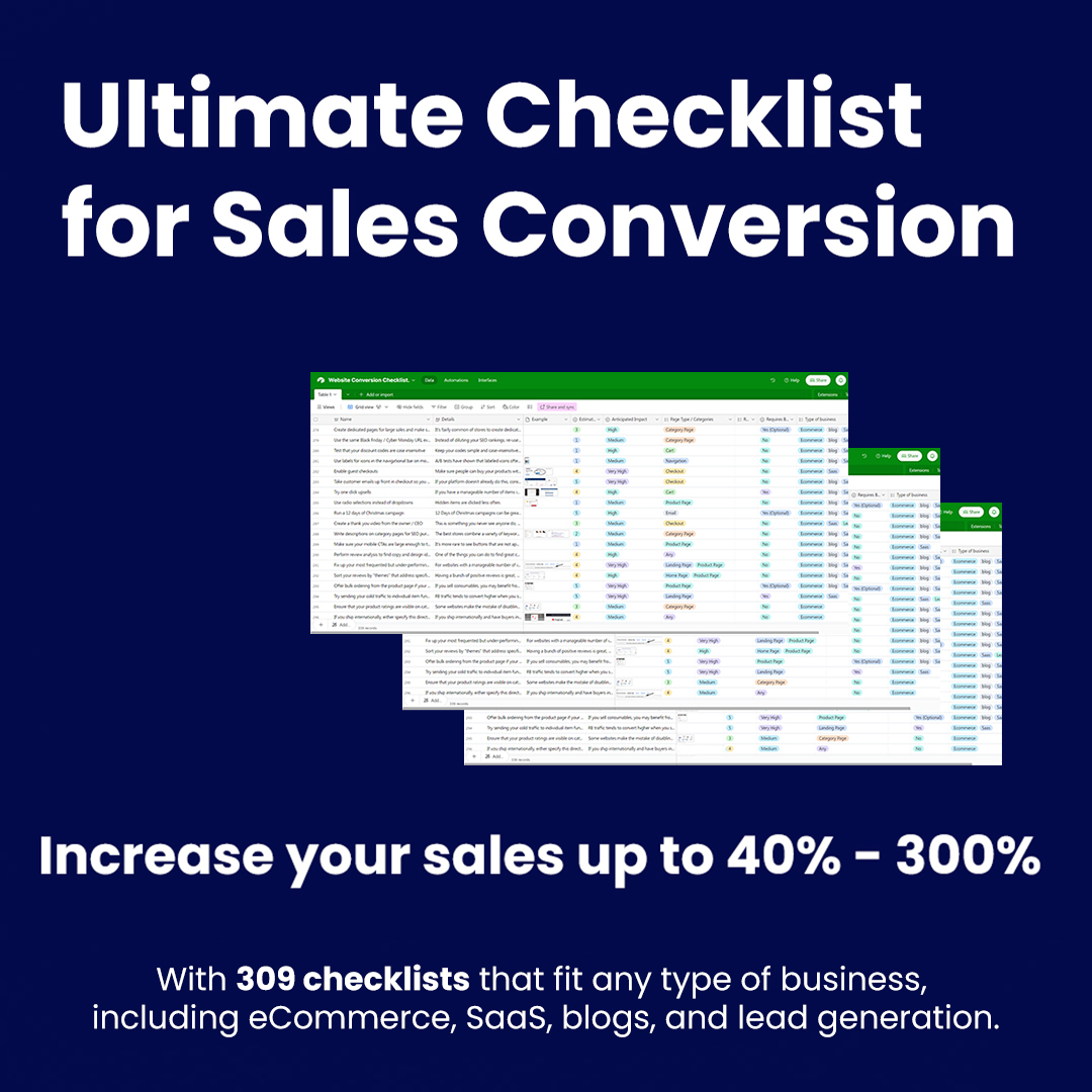 Ultimate Checklist for Sales Conversion with 309 checklist Great for ecommerce, Lead Gen, Saas, and Blog